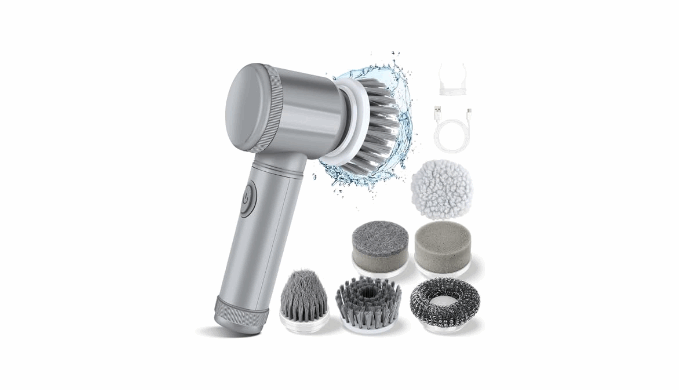 【 6 Kinds of Replaceable Brush Heads】 The electric spin scrubber includes 6 high-quality interchangeable brush heads to meet different cleaning needs in various areas. From bathroom bathtubs, kitchens, and grills to stove tops, heavily oiled walls, slots, sinks, floors, grout, toilets, car wheels, tumblers, windows, and dishes, these brush heads are versatile. The storage bracket helps save space and allows easy access to the cleaning brush.Note: Do not immerse the entire electric spin scrubber head in water. Remove the brush head and clean the electric spin scrubber separately.