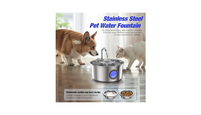 Stainless Steel Cat Water Fountain - The Cat Water Fountain is meticulously crafted from high-quality 304 stainless steel that is BPA-free, providing unparalleled durability and a level of corrosion resistance that far exceeds that of similar plastic water fountains. Not only does it stand the test of time, it can also withstand higher cleaning temperatures, This ensures the utmost well-being and safety of your cherished pets.