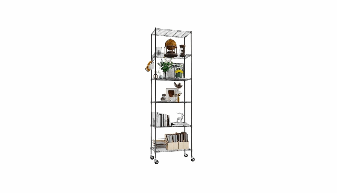 【Smart Storage Shelf】The 5-tier metal shelves (21.26”W x 11.42”D x 72.05”H) can provide additional storage space without occupying too much space. The storage shelves can be placed in kitchens, bathrooms, rooms, living rooms, warehouses, offices, industrial, commercial exhibitions, hotels, supermarkets, etc