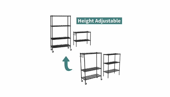 【Adjustable Height Design】Each layer of this metal shelf can be adjusted,you can adjust the height of the storage shelf according to the size of the item