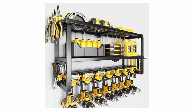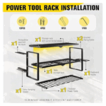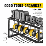 - Heavy Duty Steel Construction: The power tool organizer is constructed from a high quality powder-coated alloy steel, Its sleek black finish prevents scratching, that is rust-resistant, corrosion-resistant, and scratch-resistant.