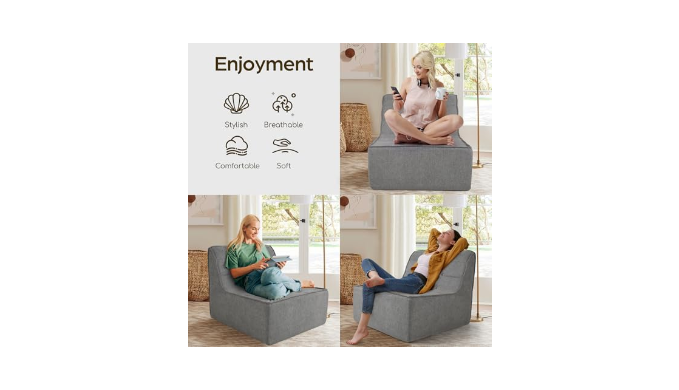 The filling of this adult bean bag chair is made of high-quality high-resilience single-piece memory foam, which can maintain its shape for a long time. The bean bag sofa cover outside this bean bag sofa is made of high-quality linen fabric with higher breathability, which has the characteristics of strong breathability, comfortable touch, soft and skin-friendly.