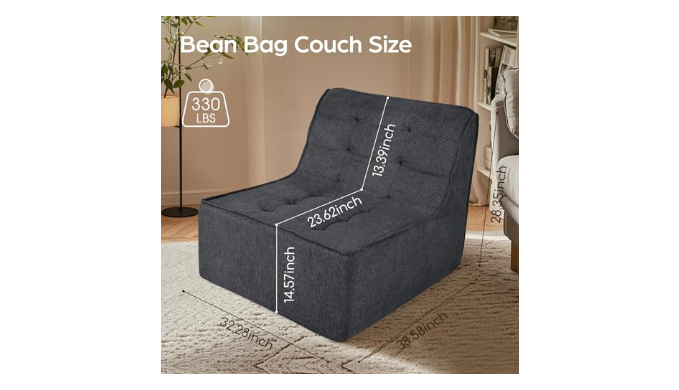 Large Size Bean Bag Chair: This lounge chair features a stylish armless design and elegant tufted details. It\'s not only fashionable but also fun. Whether you place this bean bag chair in your home, apartment, or game room, it’s versatile enough to create your ideal living space.