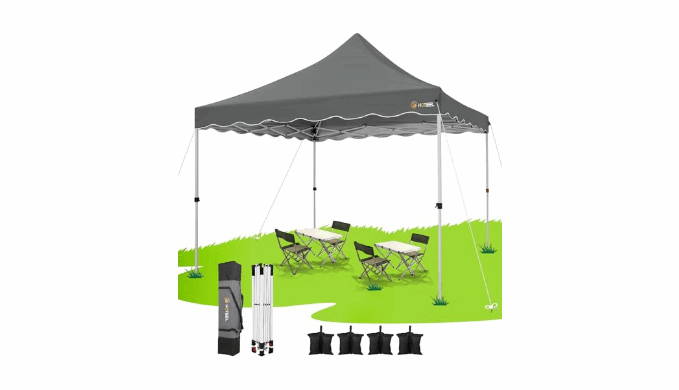 Superior Quality: 10x10 Pop up canopy features an oxford cloth top with a silver coating and a durable alloy steel frame. The silver-coated fabric reflects UV rays for sun protection and keeps the interior cooler. It\'s tear-resistant and abrasion-resistant for long-term use.