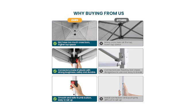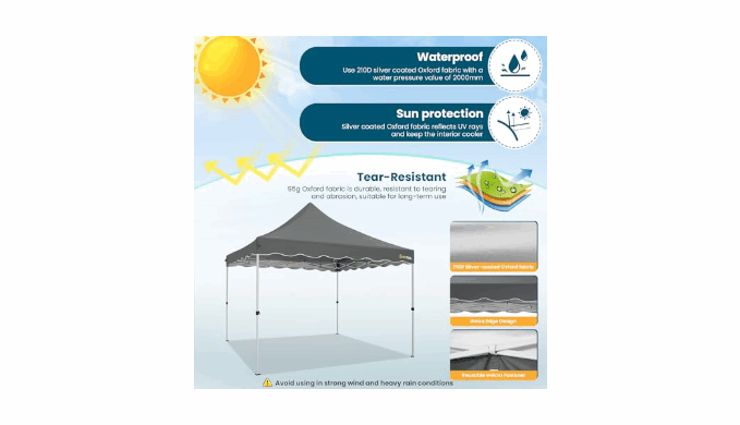 Water-Resistant Design:The extended ceiling and high peak design facilitate rainwater runoff, preventing pooling. Ideal for outdoor events like farmers markets and tailgating.