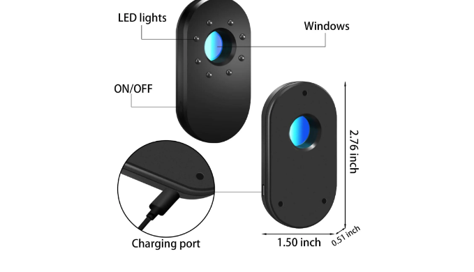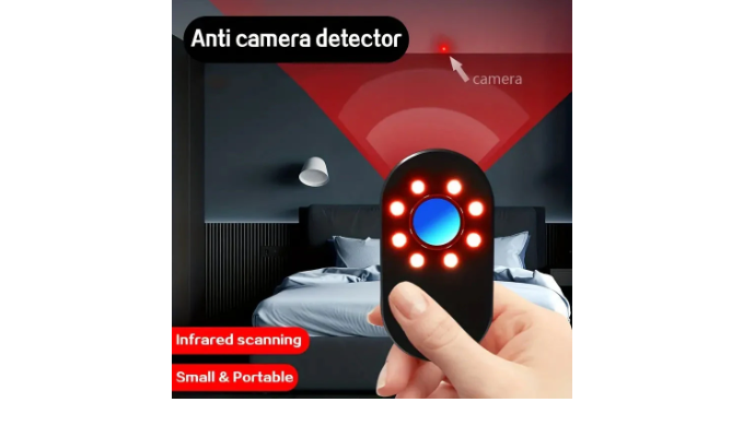 Using the LED infrared physical scanning technology, the infrared light of the detector scans the hidden camera through the dual functions of the refraction of the glass mirror of the camera and the filtering of complex light by the color filter.