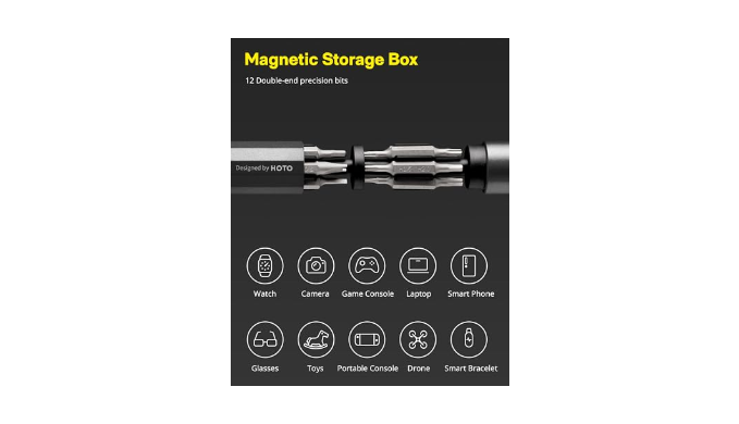 INNOVATIVE MAGNETIC STORAGE - All 12 double-ended bits are cleverly concealed within the screwdriver handle. When you slide a bit into the magnetic slot, it clicks into place with a satisfying \"click\" sound, making it a breeze to swap out bits and eliminate the risk of losing them.