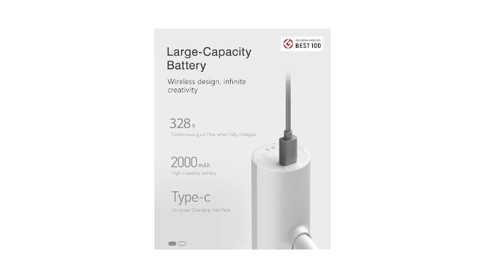 【30s Preheating】HOTO cordless hot glue gun warms up quickly in 30 seconds. The nozzle is made of highly thermally conductive brass that melts the glue stick quickly. And the implanted MCH vermiculite heating pad provides balanced heating to ensure stable and continuous flow of glue.
