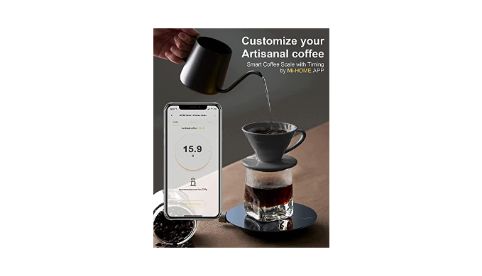 【VARIOUS FUNCTIONS WITH MIJIA APP】By connecting the coffee scale to the mobile phone, the instant data can be shared and recorded in Mi Jia APP, and the kitchen scale also acts as an exclusive hand drip assistant, making accurate records of coffee power weight, the proportion of water and coffee power and time to brew and extract