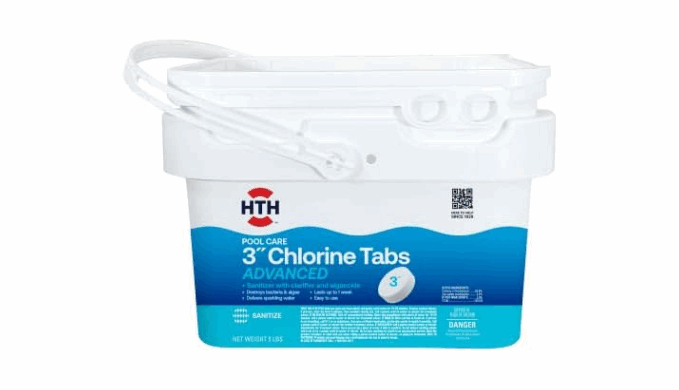 The HTH 3” Chlorine Tabs Advanced is the ultimate convenience for pool care. This easy and convenient tab is a sanitizer, clarifier, and algaecide all in one, protecting your swimming pool and swimmers. The advanced formula sanitizes, clarifies, and kills algae for beautiful, clean, and clear water all season. These slow-dissolving, long-lasting tabs are sun-protected for longer chlorine life, dissolve slowly, and last up to one week. Compatible with all pool types, including vinyl-lined pools and saltwater systems, this product can be used in a floater, feeder, or skimmer basket. For best results, use HTH 6-Way Test Strips twice weekly to test and balance your swimming pool water and keep chlorine levels between 1 and 4 ppm. With HTH 3” Chlorine Tabs Advanced, you’re all clear for fun!