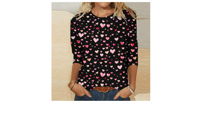 Features: love heart Shirts for women, funny Valentines graphic shirts, cute print, Valentines 3/4 Length Sleeve shirts, valentines day crew neck tops, fall fashion winter holiday tops, spring vacation long sleeve pullover.