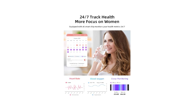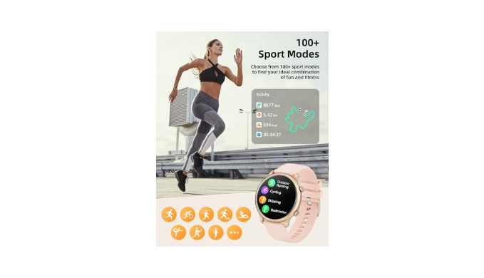 ✨【Heart Rate Monitor & Pedometer for Active Lifestyles】Fitness tracker empowers your wellness journey with precision tools like a heart rate monitor, pedometer, and SpO2 sensor,and including steps, distance, and calorie tracking. Track stress levels, menstrual cycles, and sleep stages (light/deep/REM) for holistic health insights. Smartwatch women with 100+ sports watch modes, including Walking, climbing, ball games and yoga, it adapts to every fitness goal.