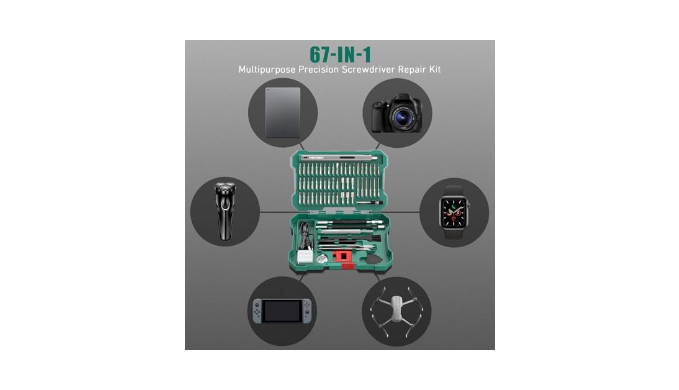 What’s in the Box: 1* Mini Electric Screwdriver, 46* precision Bits (see the picture for all bits), 1* Storage Case,1* Thimble & Mini Suction Cup, 6*Sockets, 1* Magnetizer, 1*Triangular Tablet, 1* Screw Storage Box, 1* Flexible Extension Bar, 1* Metal Crowbar, 1* Cleaning Brush, 1* Magnetic Extension Bar, 1* Plastic Crowbar, 1* Screwdriver Handle, 1* Straight Tweezer, 1* Curved Tweezer