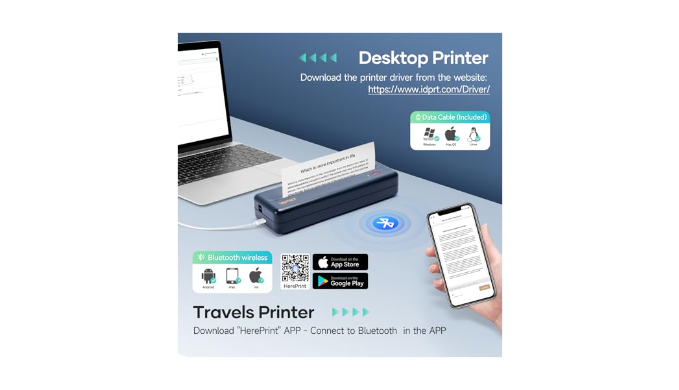 [FREE APP IS POWERFUl]iDPRT MT890 A4 printer supports computer and mobile phone connection. The phone supports iOS and Android systems: 1.You need to turn on Bluetooth in iphone\'s setting. 2. Download the \"HerePrint\" APP 3.Connect printer in the \"HerePrint\" APP. The \"HerePrint\" APP is free, it can provide a wealth of functions, allowing you to get a more creative printing experience.