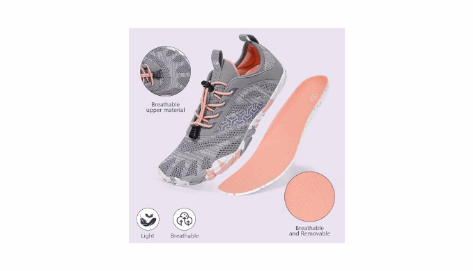 【Versatile Barefoot Shoes】Thick rubber sole and toe cap fully protect your feet from sharp objects and provide excellent cushioning. These lightweight trail running shoes are suitable for vacation, hiking, water park, pool, surfing, beach volleyball, camping, cruise, yoga, pilates, weight training, water skiing, sailing, parasailing, rowing, kayaking, windsurfing, hiking, jogging, etc.