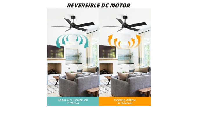 【Reversible DC Motor】The DC motor equipped with this fan not only provides super strong airflow, but also remains silent when the fan is running, allowing you to enjoy the coolness without being disturbed by noise. It also has 6 speed settings to meet your different needs. Additionally, the fan has a reversible mode, allowing you to have a comfortable environment all year round.