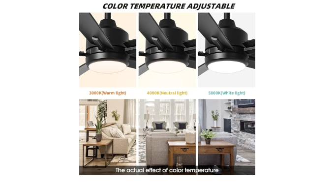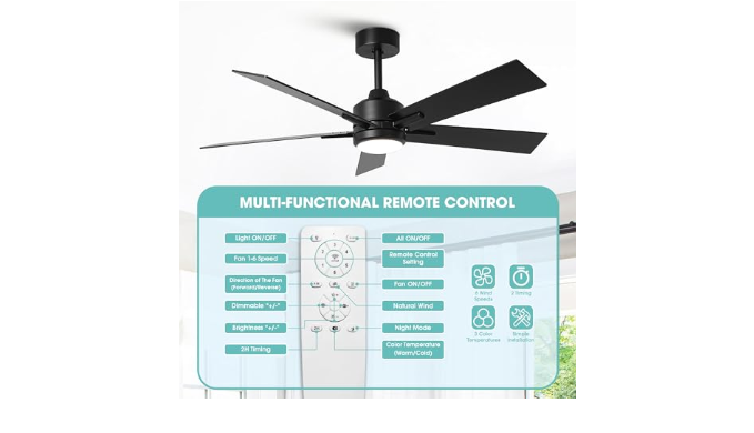 【Multi-function Remote Control】This remote control is equipped with almost all the functions you need, including 6-speed fan speed adjustment, 3 color temperature selections, and stepless dimming. It also has functions such as, 2 hours timer off, one-button turn on night light mode and separate lights or fans. The remote control is simple to operate and can be easily mastered by the elderly and children.
