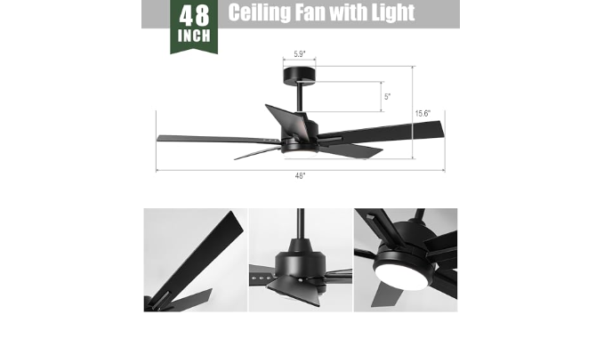 【Easy Installation】The size of ceiling fan :48\'\'*48\'\'*15.6\'\', equipped with a 5\'\' downrod, which can be flexibly adapted to flat surfaces or tilted installations up to 15°. Meet your diverse needs. We have carefully prepared all the necessary installation tools for you, along with detailed instructions, making the installation process easy and convenient, and you can enjoy a worry-free experience.