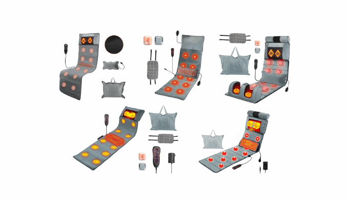 Relax and unwind with this full-body massage mat designed to target key pressure points from neck to calves. Featuring 10 vibration heads, multiple heat levels, and adjustable speeds, it provides a customizable massage experience that relieves stress, tension, and fatigue from head to toe.