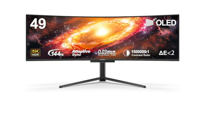 【49 Inch Curved Monitor with QD-OLED Technology】Premium OLED Panel delivers 5k2k 5120*1440 resolution up to 144hz monitor for content creation and gaming, 32:9 aspect ratio bring more wider visual than ordinary 16:9 monitor, capture game details more clearly for quick response. Tilt / Swivel / Height Adjustable meet different viewing visions