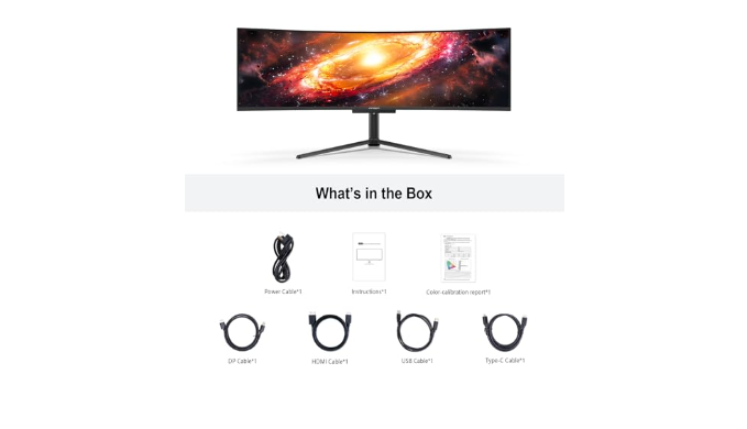 90W USB Type C, DP and HDMI Ports】49Q1R ultra widescreen pc gaming curved OLED monitor delivers powerful USB C 90W power delivery connectivity and have richful interfaces: 2 x HDMI 2.1, 1 x USB C 90W, 1 x HDMI 1.4, 2 x USB A, 1 x USB-B, 1 x RJ45, 1 x 3.5MM Audio Jack, you can directly connect your USB C devices such as Laptop, Mac, Phones, Tablets, Gaming Console( like Switch, PS5/4/3, XBOX Series etc) . It\'s much more convenient