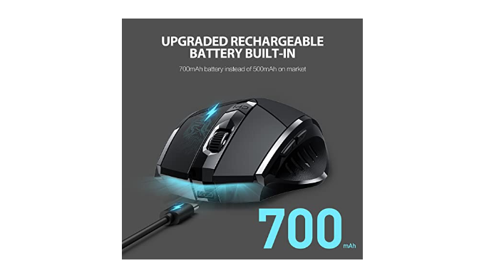 ✔ Rechargeable Wireless Mouse: Built-in 700mAh high quality rechargeable battery means you can recharge whenever you want. When you leave your mouse more than 5 minutes, it will automatically get into sleep mode which saves electricity of the mouse, and click any button for waking up the mouse again (P.S. Please recharge for 1 hour when the mouse is new before use)