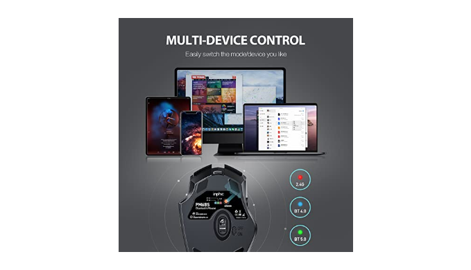 ✔Tri-Mode Connection: Inphic Bluetooth 5.0/4.0 and 2.4G USB Connection. You can switch to any mode by clicking the mode switch button located at the bottom of the mouse. Once you complete the pair of Bluetooth or insert the USB, you can freely switch to each mode and the maximum operating distance of each mode is 10 meters.