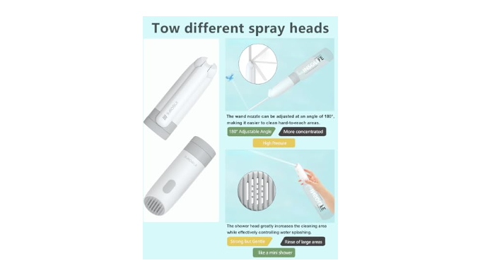 【TWO DIFFERENT EXPERIENCE】The portable bidet designed with two different experienc types of nozzles. Choose from wand nozzle for a strong and powerful jet. It offers unparalleled flexibility with greater pressure, allowing you to use it from any angle and cleaning hard-to-reach areas and fires a fairly concentrated set of jetstreams, which are great for washing and feeling clean. Choose from shower heads for a soft stream. It cleans a larger area like a shower. You can install different nozzles depending on your needs.