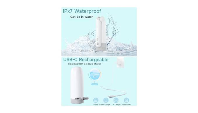 【RECHARGEABLE & WATERPROOF】The portable electric bidet has USB-C charging,after a full charge (requires continuous charging for at least 3 hours), the soft mode can run continuously for 45 minutes. The power mode can run continuously for 30 minutes, with 1-minute usage per day, providing 30-44 days of usage on a full.And insolife bidet does not leaks when tilted or inverted. The IPx7 waterproof insolife travel bidet offers a superior cleaning experience compared to the IPx6 water resistance level, it can be directly washed in water, ensuring cleaning without worries.