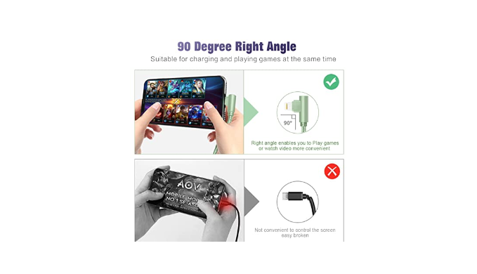 [Innovative 90 Degree Design]: Lightning charger cables has unique Right Angle Design and 90 Degree bent type, different from upseting hands after prolonged grip with normal iphone cable, its design makes it more convenient for playing the game or watching video when charging at any places