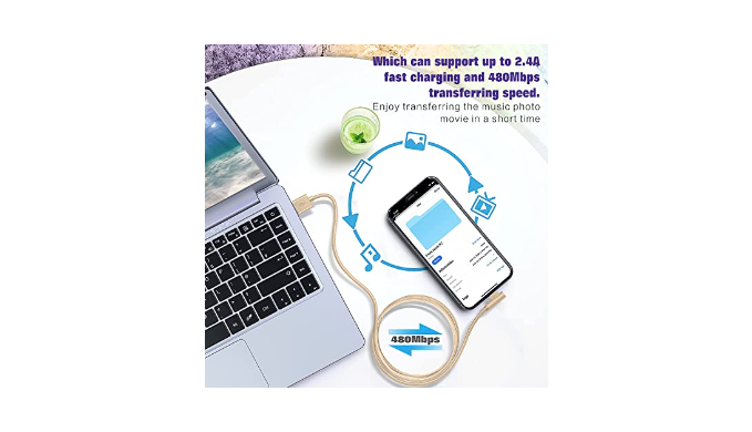 [Apple MFi Certified]: Manufactured with Apple chips, the Lightning cable fully supports iOS versions and all future updates. The iPhone sideways chargers are certified for high quality, tensile strength, fast charging, and can support up to 2.4A fast charging and 480 Mbps transfer speed, ensuring full charge and sync compatibility with your iPhone devices
