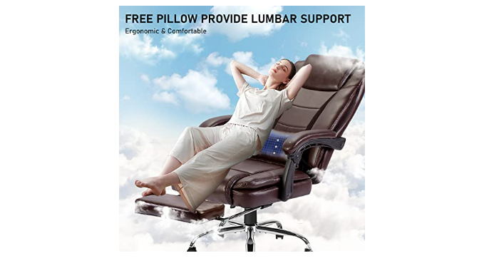 【UPGRADED COMFORT】High Back Desk Chair with 5” thickened headrest, 28” high backrest, retractable footrest, 3.5”adjustable height, and streamline linkage armrest, fit the curve of human spine and give you strong support, ensure you not feel pain or sore for long time working