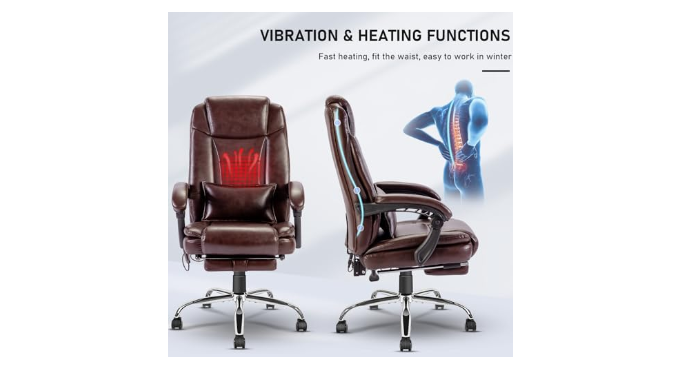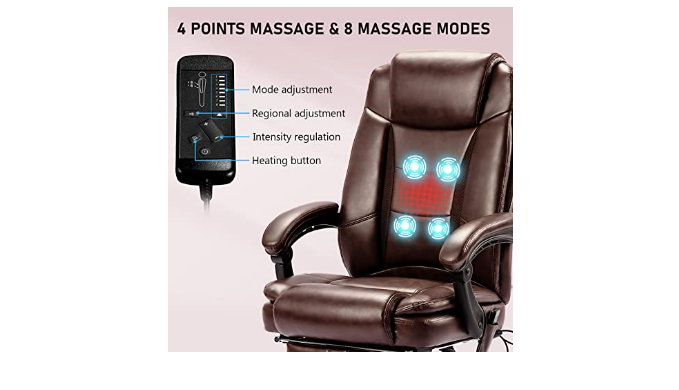 【4 POINTS MASSAGE & HEATING】Heating Office Chair comes with a remote to customize your experience: 8 massage vibration modes on 4 regions(2 back points & 2 waist points) with heating temperature Max.122℉