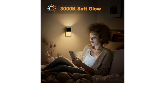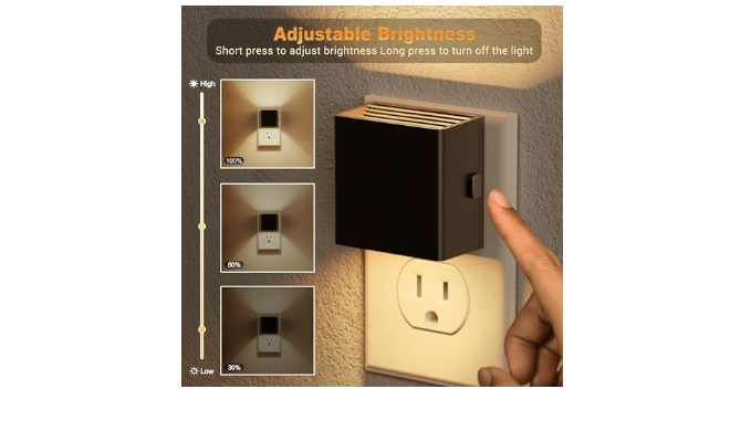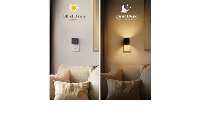 Automatic Light Sensor Night Light :This plug-in night light features a built-in dusk-to-dawn light sensor that automatically turns the light on when the environment becomes dim and off when sufficient light is detected. For added convenience, the night light can be turned off entirely by pressing and holding the button for 2 seconds, offering customizable control for your lighting needs.