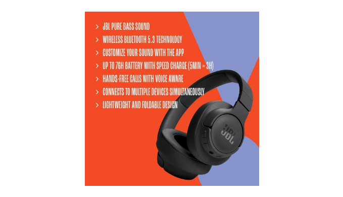 Experience powerful sound with the JBL Tune 720BT wireless headphones, featuring JBL Pure Bass technology. Enjoy seamless Bluetooth 5.3 connectivity, custom sound settings, and hands-free call management, all wrapped in a sleek, convenient design. Whether you’re at home or on the go, these headphones offer a premium audio experience tailored to your preferences.