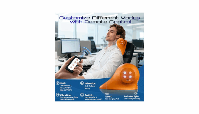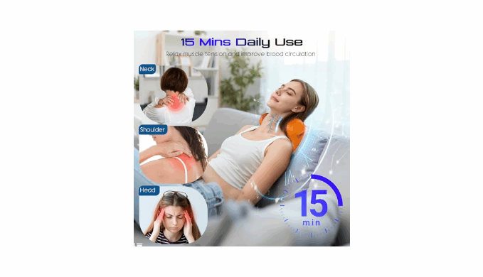 【Safe, Quiet Operation for Daily Comfort】 This Neck Massager with Heat prioritizes safety during long sessions. The low-noise vibration motor (≤40dB) ensures quiet use—no disturbance while you work, rest, or unwind. Sturdy, skin-friendly materials support daily long-term use.
