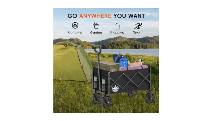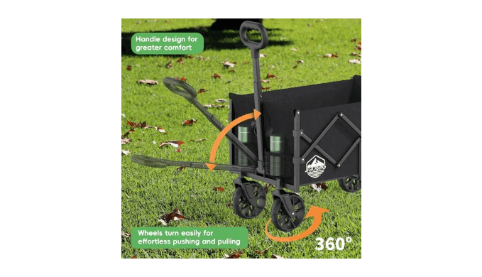 【360°swivel wheels】Our camping wagon comes with 360° all - terrain wheels. These wheels are suitable for all types of terrains and can maintain balance. We\'ve added shock - absorbing and abrasion - resistant features. The wagon can pass through lawns, gravel roads, and highways smoothly and easily. You can\'t go wrong by choosing our product!