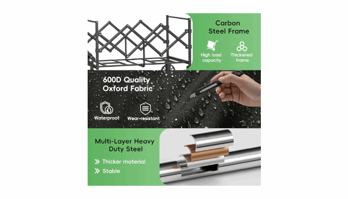 【Stable construction and solid material】This heavy-duty foldable wagon cart is made of waterproof 600D Oxford cloth. It doesn\'t get dirty easily and can be cleaned with a wipe. The thicker fabric is less likely to get scratched during the transportation of the wagon. The steel frame at the bottom is very sturdy and has a high load - bearing capacity, which can better assist you.