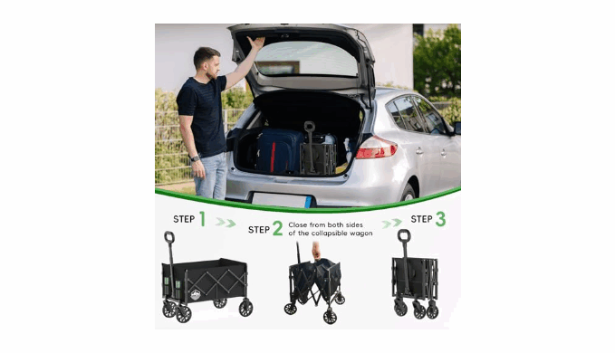 【Easy installation and storage】The collapsible wagon can be folded up in 20 seconds and, when folded, takes up very little space. It can be placed in the corners of warehouses or the trunks of cars. It is light enough for both children and women to lift easily, making it convenient to carry around. With a carrying weight of only 11 LBS, it can be lifted with one hand. If you want a portable wagon, this is a very good choice!