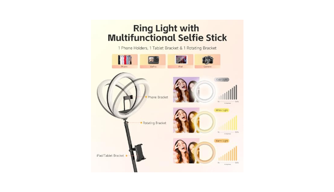 [360 Photo Booth Machine for Parties] The ring light wth 3 colors lighting mode, and each lighting mode have 10 adjustable brightness. You can make 360-degree panoramic spin videos and fantastic photos, and share them to your social media account instantly such as Facebook, Instagram, Youtube,Twitter, and Tiktok etc.