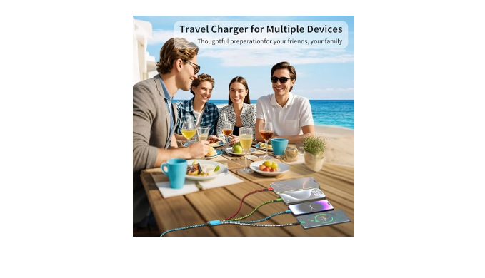 Dual Type C Port 4 in 1 USB Charging Cable:Charge any of your devices with the 4 in 1 multi charging cable, built-in DUAL USB C connectors, iP and Micro USB connectors.Charging cords for multiple devices support to charge four devices at the same time.You can carry this multi charger cable anywhere, perfect for home, car, office, travel, dock, or sharing with friends