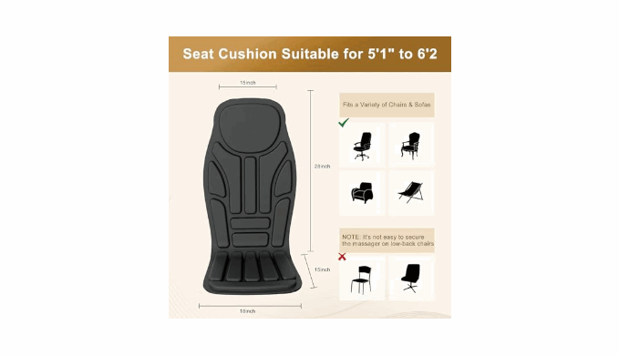 【Easy Setup & Storage】: Quickly attach the massage pad to any office chair, home seat, or car chair with adjustable straps and secure hooks. Stays firmly in place during use, and folds neatly for compact storage when not in use.