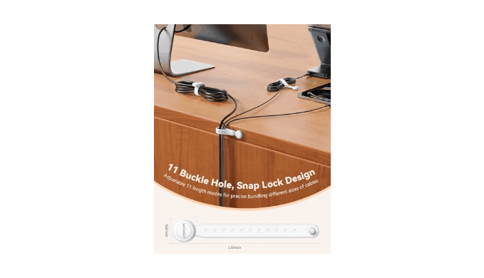 【11-Hole Adjustable Design for a Perfect Cable Fit】Featuring an innovative design with 11 button holes, these JOYROOM cord management Ties allow you to securely bundle a variety of cables with precision. The multiple hole options ensure a tight, customized fit for different cable sizes, making them perfect for everything from charging cords to USB cables. Experience the ultimate in cable organization and flexibility!