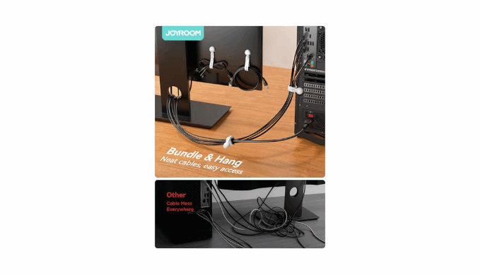 【Endless Uses for Everyday Organization】More than just a magnetic cord organizer, JOYROOM magnetic ties are designed for endless uses. They are perfect for bundling office cords, hanging charging cables and securing kitchen appliance cords to keep your space tidy and clutter-free. The strong magnetic design attaches them to metal surfaces, perfect for hanging keys, headphones, kitchen tools and other small items. Use them to organize backpacks, bundle travel essentials, secure bike lights, or even as a quick hold strap for household items. Durable, reusable and versatile, these magnetic cord clips are the perfect solution for keeping things tidy at home, in the office or on the go!