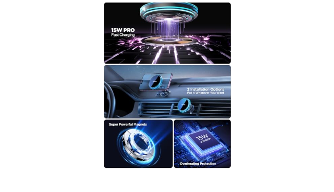 【Compatibility & Responsive Support】This JOYROOM Car wireless charger is compatible for iPhone 15/15 Pro/15 Plus/15 Pro Max/14/13 /12 series and other phones that support MagSafe charging .(We include two additional metal rings with this car phone holder mount.)If you encounter any issues while using our product, feel free to contact us through the Amazon Message Center for prompt assistance. A satisfactory solution is guaranteed forever.