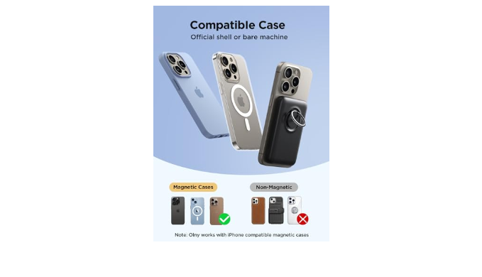 【Designed for iPhone 16/15/14/13/12 Series】This magnetic portable charger is expertly crafted to work seamlessly with the iPhone 15/14/13/12 series and MagSafe-compatible cases. Note: Only available for those without cases and MagSafe cases