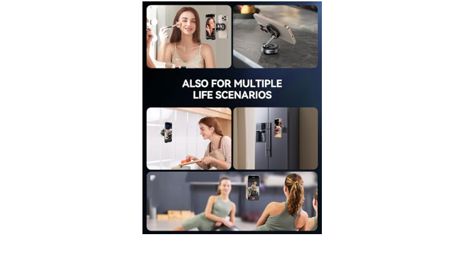 【Multi-Scenario Use Beyond Your Vehicle】More than just a car phone holder - transform any smooth surface into a hands-free station! Stick it on kitchen countertops as a recipe viewer, office desks for video calls, or gym mirrors for workout routines. The dual-purpose magnetic phone holder for car and home features scratch-free suction that works equally well on granite, glass, or laminated surfaces. Carry one device mount that serves all your mobile needs - from road trips to Zoom meetings.