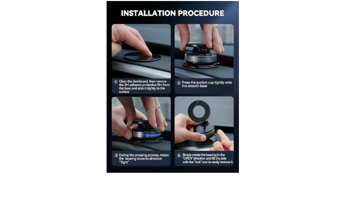【Innovative Suction Cup Base with Unmatched Stability】Joyroom\'s upgraded suction cup phone mount creates a vacuum seal that grips firmly on windshields, dashboards, or any smooth surface - even in extreme temperatures.It stays rock-solid through bumpy roads yet removes cleanly without residue.(Includes a free dashboard pad specifically designed for textured surfaces - simply attach your suction cup phone mount to this adhesive platform for rock-solid positioning on grainy dashboards).