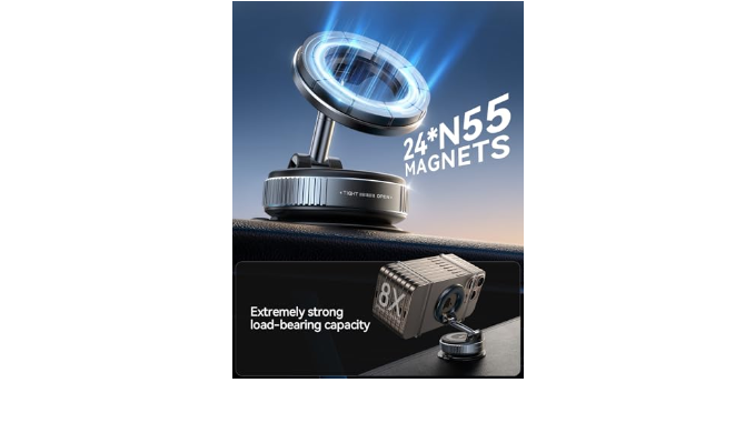 【Military-Grade Magnetic Force for Instant Attachment】Featuring 24 powerful N55 magnets in optimized layout, our magnetic phone holder for car secures devices up to 2.5lbs (even large Pro Max models) at lightning speed. The ultra-strong magnetic car phone mount keeps your phone stable during sharp turns. No more fumbling with clamps - just tap and go!
