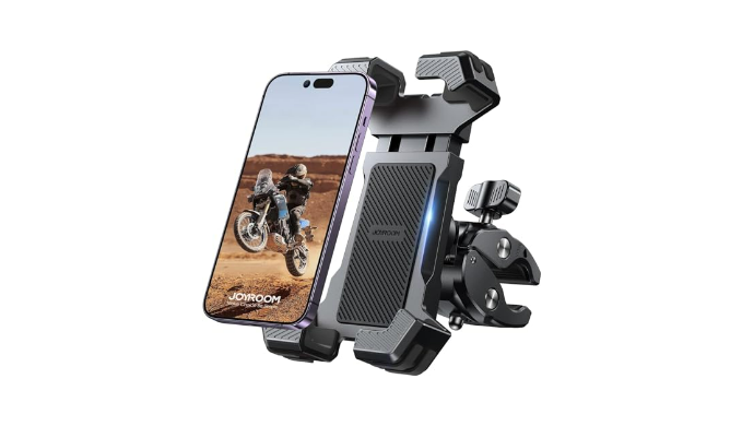 EASY ONE-HANDED OPERATION: Just needs 1 SECOND to put your phone into joyroom motorcycle phone holder/bike phone holder, without any complicated operations. This makes our motorcycle cell phone mount more convenient to use while cycling, allowing you to keep your other hand free to operate your bike\\\'s controls.
